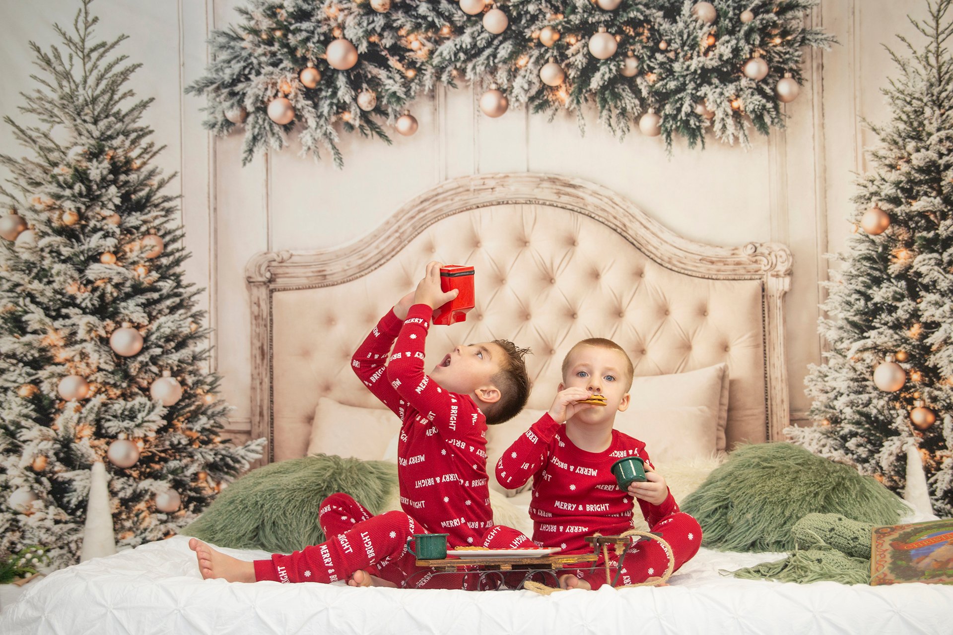 THINK COZY CHRISTMAS MORNING KINDA FEEL, STILL IN PJ'S, FULL OF EXCITMENT, great for just kids OR big enough for a small family! NO shoes on white bedding, socks is just PERFECT! **BRAND NEW SET FOR 2025- see previous years examples also listed for an idea of what to expect! These are fun!