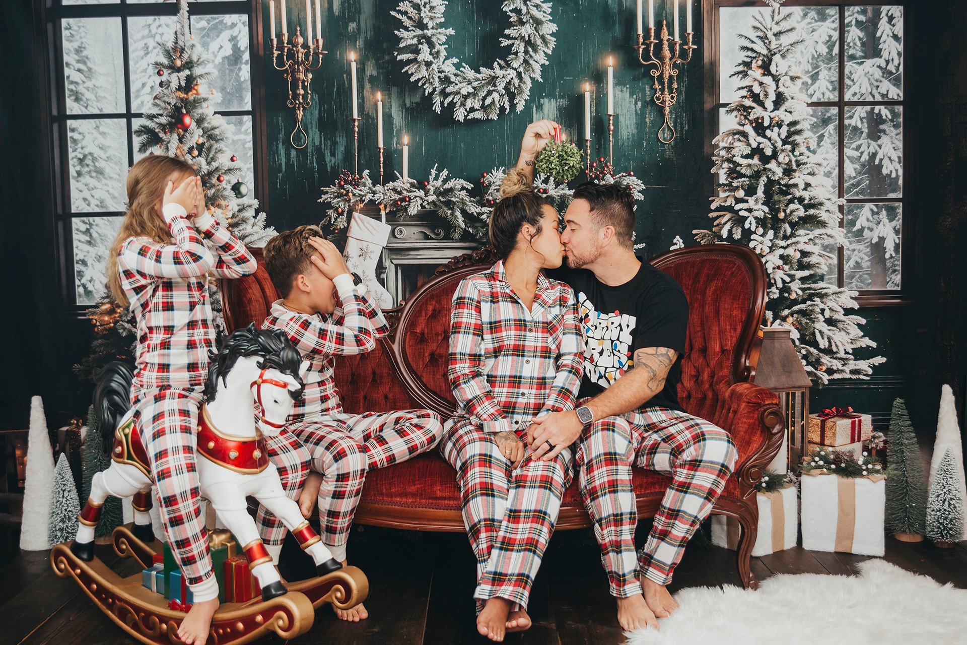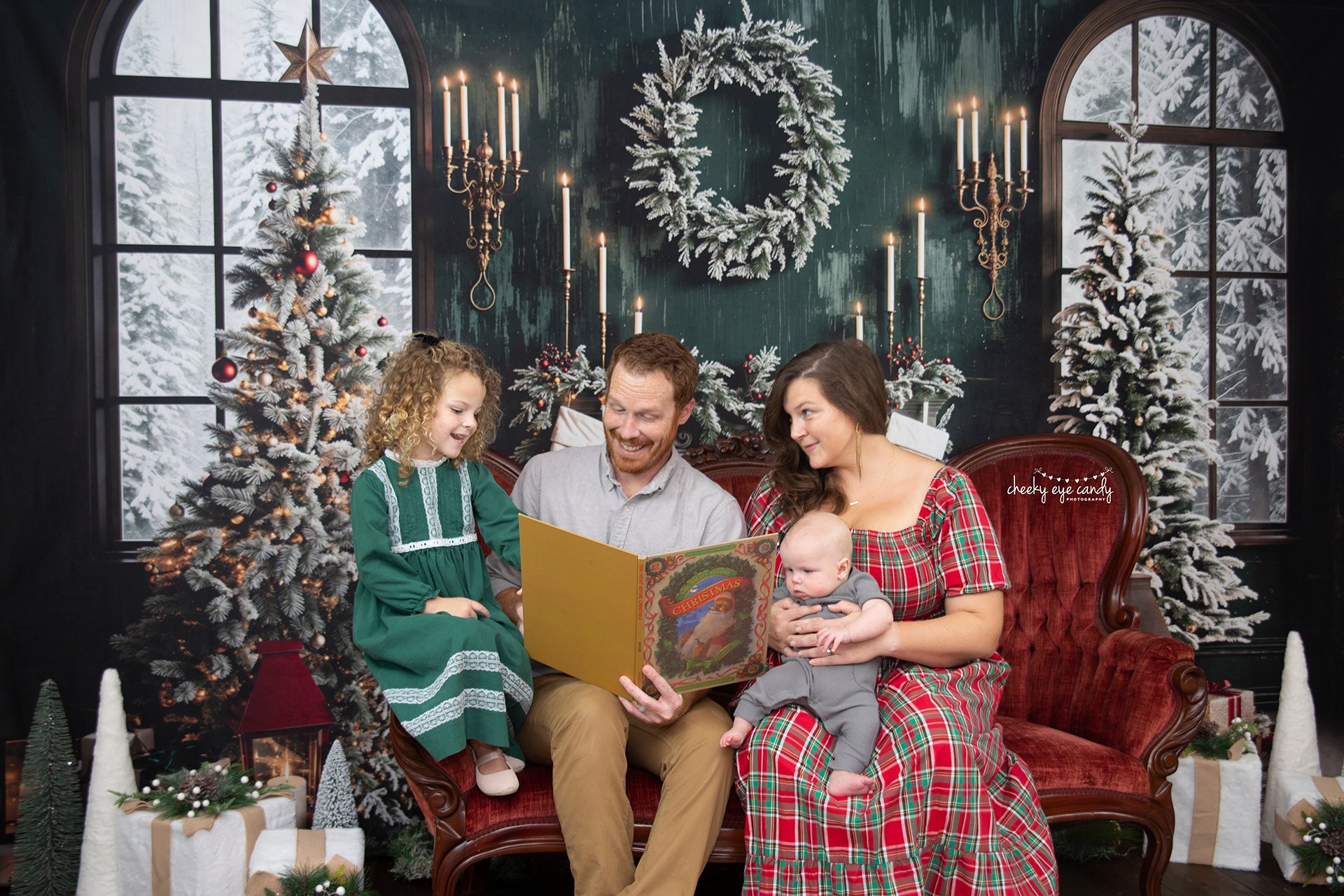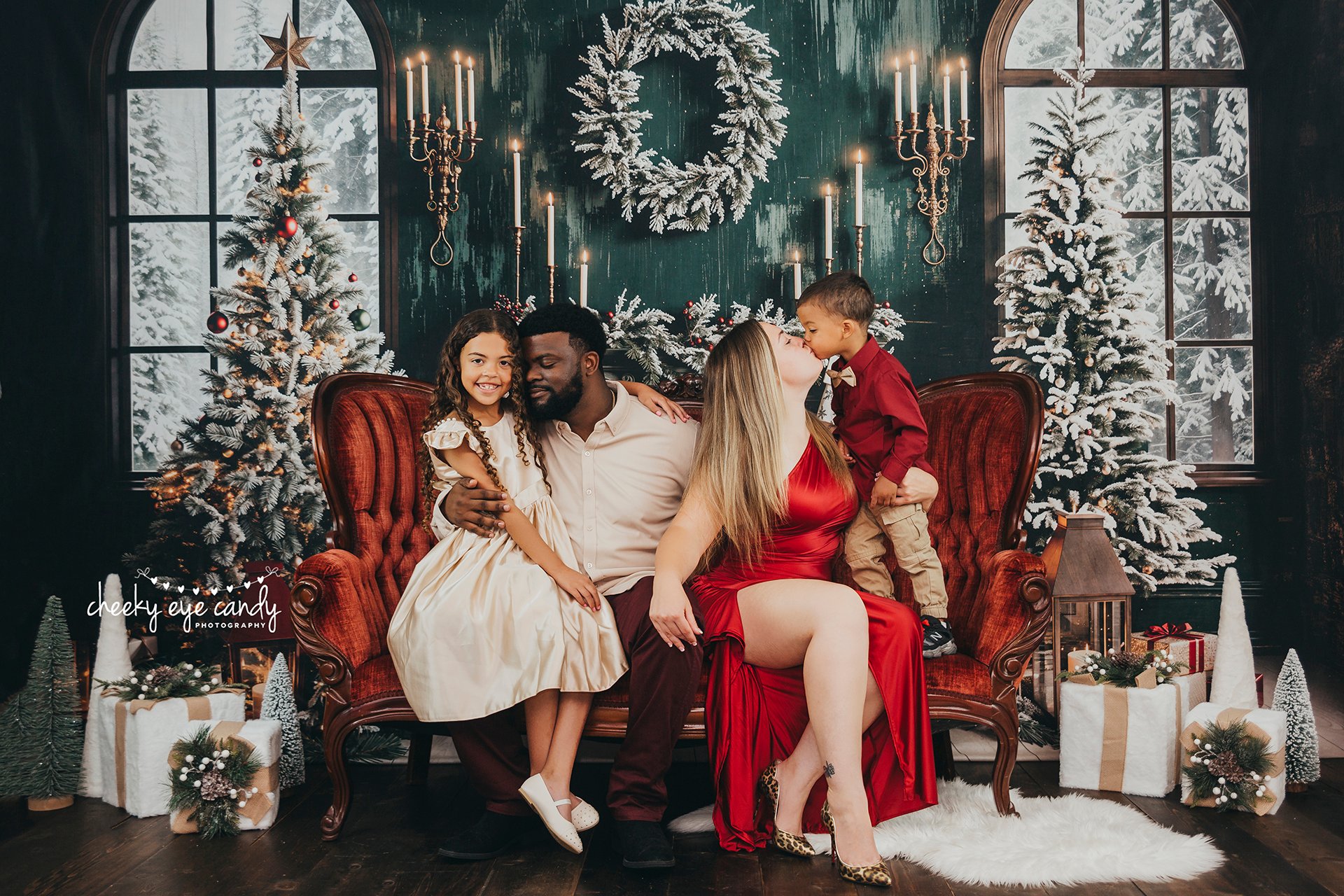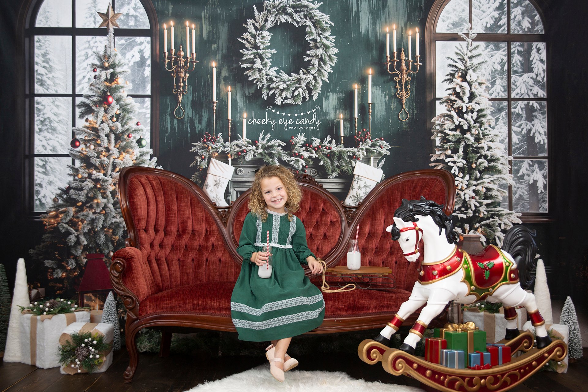 Elegant studio vintage COUCH, great for just kids OR big enough for a small family! Dress elegant or in Christmas PJ's, both look great! White floor will be used!